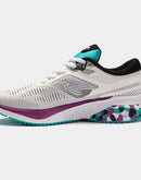 Women's running trainers. The benefits of these running shoes include their extra cushioning due to a double density midsole and gel piece. It absorbs each step while simultaneously propelling the runner forward.