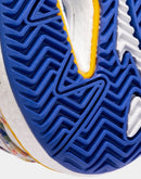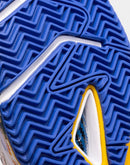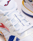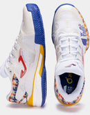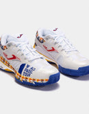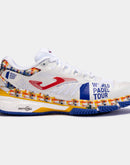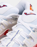 Men's specialist padel trainers. Intended for professional use in high frequency training and competition and ideal for mid to high weight padel players. These are the best all-round Joma padel shoes, combining stability, reactivity and cushioning. The upper is made of textile and synthetic material. The textile features VTS technology, a ventilation system that keeps the temperature of the foot constant. The synthetic material is inserted seamlessly to ensure the shoes remain lightweight, while protecting the upper and ensuring a good fit. The use of REACTIVE BALL technology in the midsole provides great cushioning. This is a material that expands easily, so it is designed to reduce sudden impacts yet recover its shape quickly, boosting the push-off. In addition, the midsole includes another higher density phylon base that provides stability as part of the FULL DUAL PULSOR system. This phylon is sectioned with FLEXO groove lines, which allow the shoes to adapt to the foot strike in an ergonomic way. They have a STABILIS piece to stabilize the foot strike and avoid improper turns. The sole is made of DURABILITY rubber, which is very resistant to wear from abrasion. This material extends the life of the shoes.
