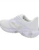 The upper is made from breathable nylon textile in a clean white finish, offering lightweight comfort and flexibility. It also features VTS perforation technology, which helps release moisture and maintain proper airflow inside the shoe, keeping your feet cool and dry during activity.