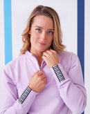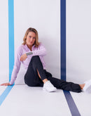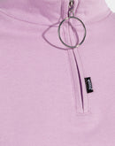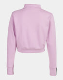 Women's cropped sweatshirt. It features a half zip with a hoop pull, a high collar and ribbed hem and cuffs for a more comfortable fit. It is made of cotton with a fleece interior, which brings softness, comfort and warmth to the wearer. This sweatshirt stands out for its completely contemporary casual style. It will bring a modern and comfortable touch to everyday looks. In addition, it includes a custom ribbon on the cuffs. Logo on woven label.